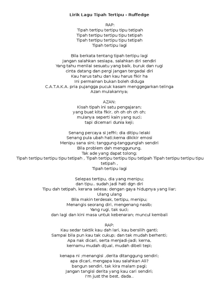 Hal ini bisa terjadi karena adanya proses patterning. Kumpulan Lirik Lagu Rap Jumat 01 Juni 2012. Tidak ada tema yang jelek dalam rap asalkan berasal dari pengalaman pribadi.